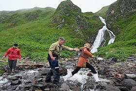 Виды Курильских островов. Жанровая фотография. Участники экспедиции в бухте Закатная на острове Шиашкотан.