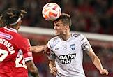 Фонбет - Кубок России по футболу 2023/24. Матч между командами "Спартак" (Москва) и "Пари Нижний-Новгород" (Нижний-Новгород) на стадионе "Открытие Банк Арена". Игрок команды "Спартак" Михаил Игнатов (справа) во время матча.