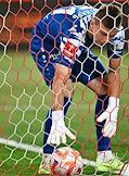 Фонбет - Кубок России по футболу 2023/24. Матч между командами "Спартак" (Москва) и "Пари Нижний-Новгород" (Нижний-Новгород) на стадионе "Открытие Банк Арена". Вратарь команды "Пари Нижний-Новгород" Виталий Ботнарь (справа) во время матча.