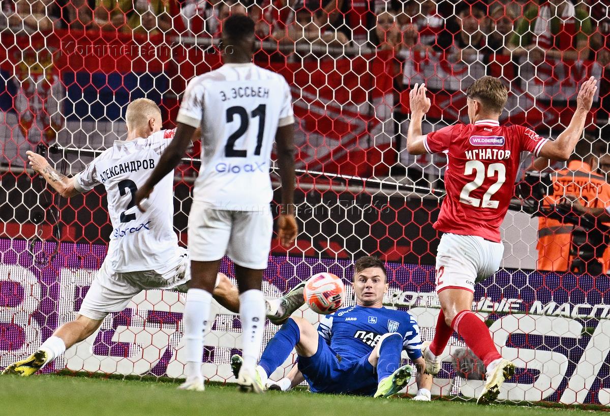 Фонбет - Кубок России по футболу 2023/24. Матч между командами "Спартак" (Москва) и "Пари Нижний-Новгород" (Нижний-Новгород) на стадионе "Открытие Банк Арена". Игрок команды "Спартак" Михаил Игнатов (справа) во время матча.