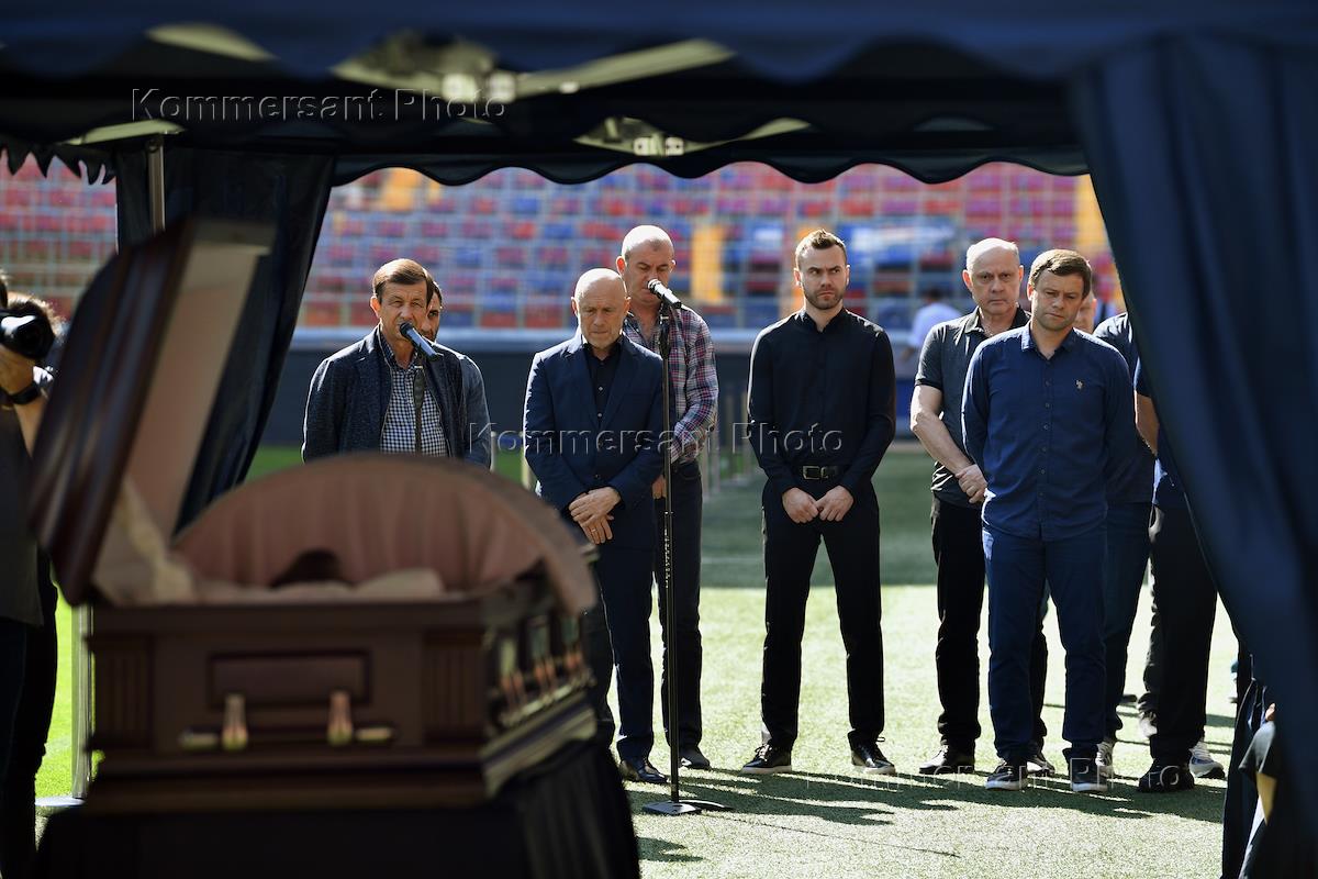 Церемония прощания с бывшим вратарем футбольного клуба ЦСКА и сборной России по футболу Вениамином Мандрыкиным на стадионе "ВЭБ Арена".