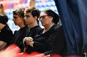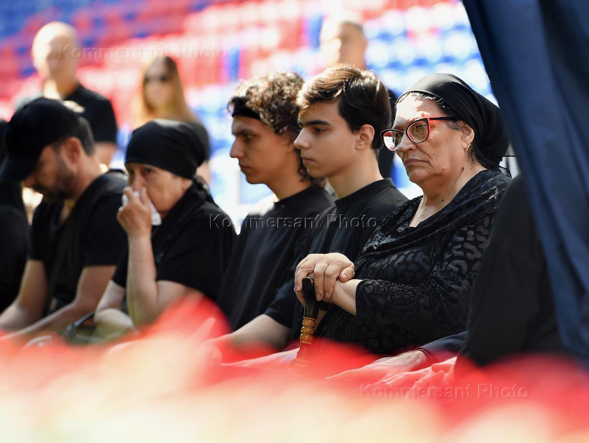 Церемония прощания с бывшим вратарем футбольного клуба ЦСКА и сборной России по футболу Вениамином Мандрыкиным на стадионе "ВЭБ Арена". Мать Вениамина Мандрыкина Надежда (справа) на церемонии и его 2 сына.