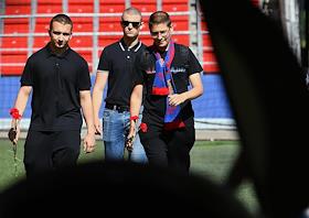 Церемония прощания с бывшим вратарем футбольного клуба ЦСКА и сборной России по футболу Вениамином Мандрыкиным на стадионе "ВЭБ Арена". Вратарь футбольной команды ЦСКА Игорь Акинфеев (в центре) на церемонии.