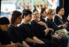 Церемония прощания с бывшим вратарем футбольного клуба ЦСКА и сборной России по футболу Вениамином Мандрыкиным на стадионе "ВЭБ Арена". Мать Вениамина Мандрыкина Надежда (в центре) на церемонии.
