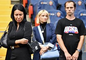 Церемония прощания с бывшим вратарем футбольного клуба ЦСКА и сборной России по футболу Вениамином Мандрыкиным на стадионе "ВЭБ Арена". Бывшая супруга Вениамина Мандрыкина Диана (слева) на церемонии.