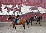 Работа Новосибирского ипподрома. Жанровая фотография. Тренировка и выгул лошадей.