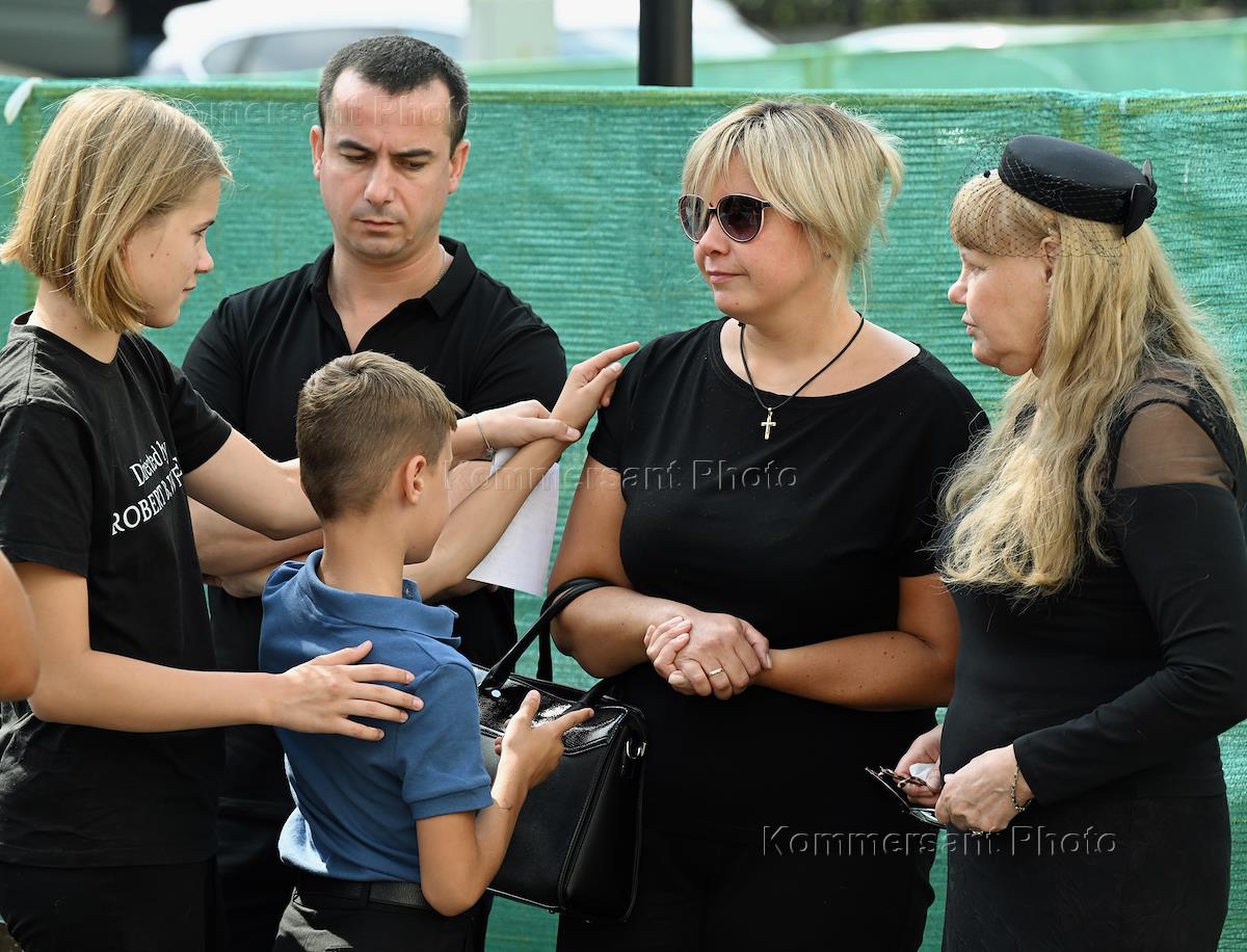 Церемония прощания с ведущим радиостанции "Говорит Москва" и известным автором переводов фильмов Леонидом Володарским в траурном зале Центральной клинической больницы (ЦКБ) Управления делами президента России. Близкие Леонида Володарского во время церемонии.