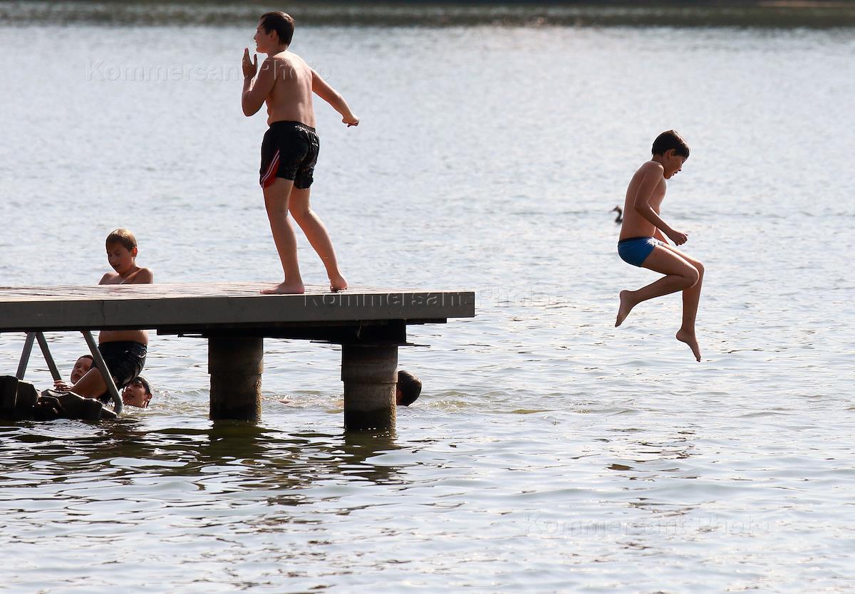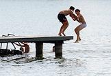 Жанровая фотография. Дети прыгают с пирса в воду.