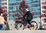 Виды Казани. Жанровая фотография. Женщина в хиджабе на велосипеде и в наушниках.