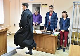 Заседание суда по делу депутата городской Думы Томска, бывшего координатора Томского штаба Алексея Навального (признан в России иноагентом) Ксении Фадеевой, обвиняемой в организации экстремистского сообщества и участии в НКО, нарушающей права граждан, в Советском районном суде. Депутат городской Думы Томска Ксения Фадеева (слева) и адвокаты Кирилл Терехин (справа) и Семен Воднев (в центре) перед началом заседания.