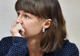 Заседание суда по делу депутата городской Думы Томска, бывшего координатора Томского штаба Алексея Навального (признан в России иноагентом) Ксении Фадеевой, обвиняемой в организации экстремистского сообщества и участии в НКО, нарушающей права граждан, в Советском районном суде. Жанровая фотография. Прокурор Юлия Карликовская во время заседания.