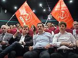 Мультимедийная презентация предвыборной программы кандидата в мэры Москвы от КПРФ Леонида Зюганова в кинотеатре "Киномакс XL". Участники во время презентации.