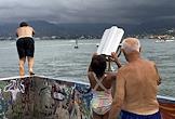Виды Батуми. Жанровая фотография. Отдыхающие у бинокля на набережной.
