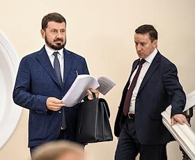 Заседание Президиума Государственного совета России по вопросам развития транспорта в Кремле. Заместитель начальника Управления президента России по обеспечению деятельности Государственного совета России Вадим Зеленёв (слева) после заседания.