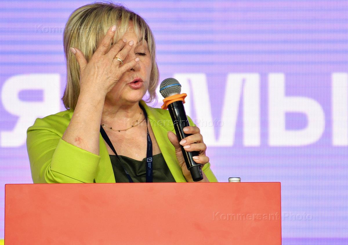 Всероссийский молодежный образовательный форум "Территория смыслов" на площадке образовательного центра президентской платформы "Россия – страна возможностей" – Мастерской управления "Сенеж". Председатель Центральной избирательной комиссии (ЦИК) России Элла Памфилова во время выступления на форуме.