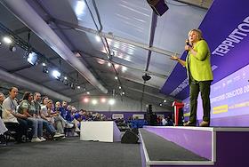 Всероссийский молодежный образовательный форум "Территория смыслов" на площадке образовательного центра президентской платформы "Россия – страна возможностей" – Мастерской управления "Сенеж". Председатель Центральной избирательной комиссии России Элла Памфилова во время выступления перед участниками форума.