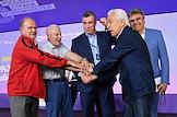 Всероссийский молодежный образовательный форум "Территория смыслов" на площадке образовательного центра президентской платформы "Россия – страна возможностей" – Мастерской управления "Сенеж". Председатель Либерально-демократической партии России (ЛДПР) Леонид Слуцкий (справа), лидер КПРФ Геннадий Зюганов (в центре), руководитель фракции "Единая Россия" в Государственной думе России Владимир Васильев (второй справа) и лидер партий "Новые люди" Алексей Нечаев (слева) в центре.