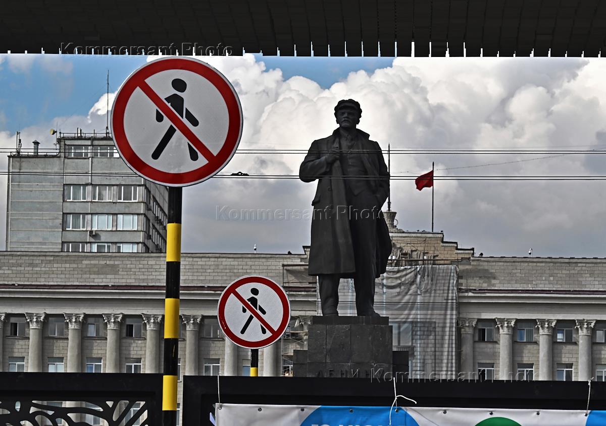 Виды Красноярска во время избирательной кампании по выборам губернатора Красноярского края. Жанровая фотография. Памятник Ленину на площади Революции.