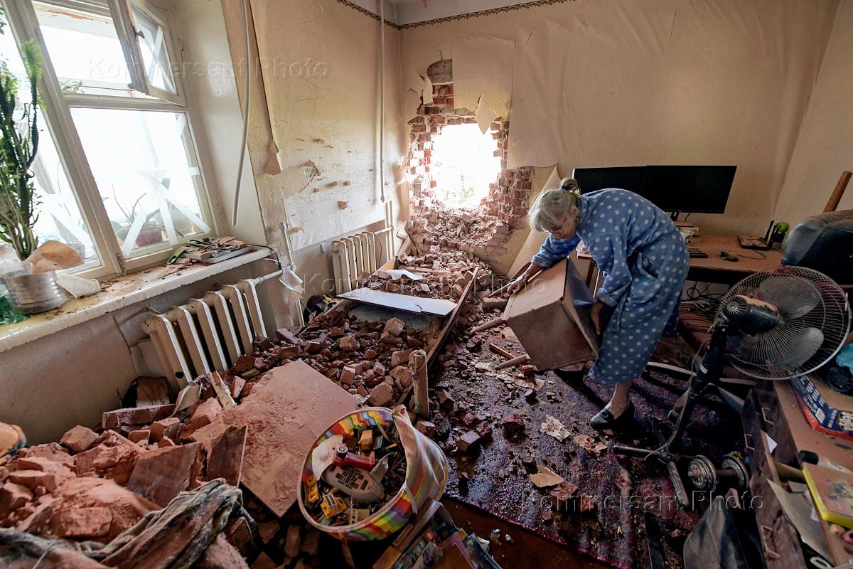 Последствие обстрела жилого дома на улице Розы Люксембург. Жильцы в квартире после прямого попадания в дом.