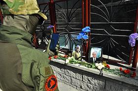 Стихийный мемориал, посвященный погибшему в авиакатастрофе главе ЧВК "Вагнер" Евгению Пригожину, на месте бывшего офиса ЧВК "Вагнер" на улице Ядринцевская в Новосибирске.