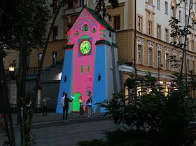 Международный фестиваль медиаискусства Intervals в исторической части Нижнего Новгорода. Инсталляция на Большой Покровской улице.
