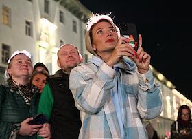 Международный фестиваль медиаискусства Intervals в исторической части Нижнего Новгорода. Зрители на фестивале.