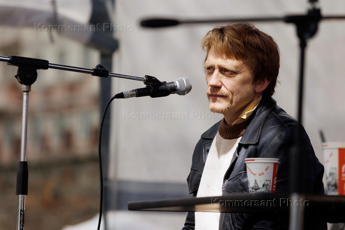 Книжный фестиваль "Красная строка в Екатеринбурге". Актер театра и кино, музыкант, лидер группы «Курара» Олег Ягодин во время выступления на фестивале.
