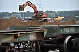 Строительство транспортно-логистического центра ТЛЦ "Сибирский". Губернатор Новосибирской области Андрей Травников во время посещения строительства.