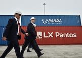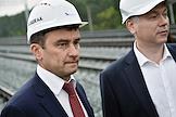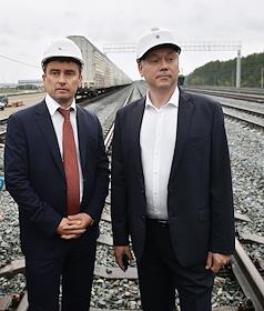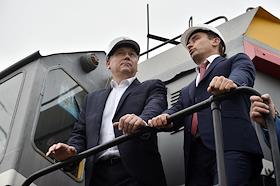 Строительство транспортно-логистического центра ТЛЦ "Сибирский". Губернатор Новосибирской области Андрей Травников (слева) во время посещения строительства.