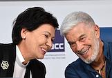 Пресс-конференция, посвященная результатам всероссийского проекта "Родники" в пресс-центре ТАСС. Президент благотворительного фонда "Равенство возможностей" Елена Ульянова (слева) и певец Олег Газманов во время пресс-конференции.