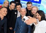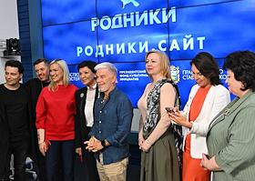 Пресс-конференция, посвященная результатам всероссийского проекта "Родники" в пресс-центре ТАСС. Певец Олег Газманов (в центре) и президент благотворительного фонда "Равенство возможностей" Елена Ульянова (четвертая слева) во время пресс-конференции.