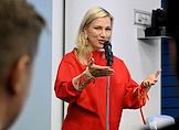 Пресс-конференция, посвященная результатам всероссийского проекта "Родники" в пресс-центре ТАСС. Президент благотворительного фонда "Равенство возможностей" Елена Ульянова во время пресс-конференции.