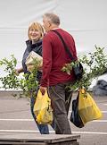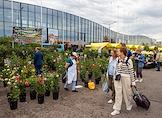 Международная агропромышленная выставка "Агрорусь-2023" в конгрессно-выставочном центре "Экспофорум". Жанровая фотография. Рабочие во время погрузки саженцев гортензии в автомобиль.