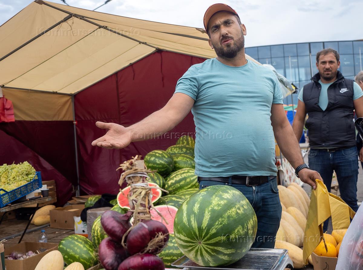 Международная агропромышленная выставка "Агрорусь-2023" в конгрессно-выставочном центре "Экспофорум". Жанровая фотография. Продажа бахчевых культур на выставке.