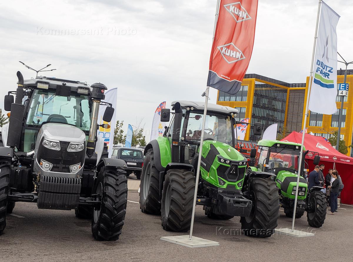 Международная агропромышленная выставка "Агрорусь-2023" в конгрессно-выставочном центре "Экспофорум". Жанровая фотография. Сельскохозяйственная техника на выставке.