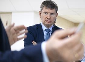 Совещание по развитию экономики Нижегородской области состоялось на площадке Особой экономической зоны "Кулибин". Министр экономического развития России Максим Решетников (слева) во время совещания.