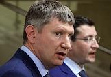 Совещание по развитию экономики Нижегородской области состоялось на площадке Особой экономической зоны "Кулибин". Министр экономического развития России Максим Решетников (справа) во время совещания.