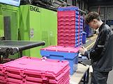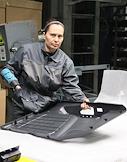 Дзержинское производственное объединение "Пластик". Жанровая фотография. Сотрудники предприятия во время изготовления пластмассовых изделий для автомобиля.
