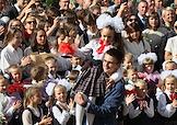 День знаний, посвященный началу нового учебного года. Тторжественная линейка в школе №118. Жанровая фотография.