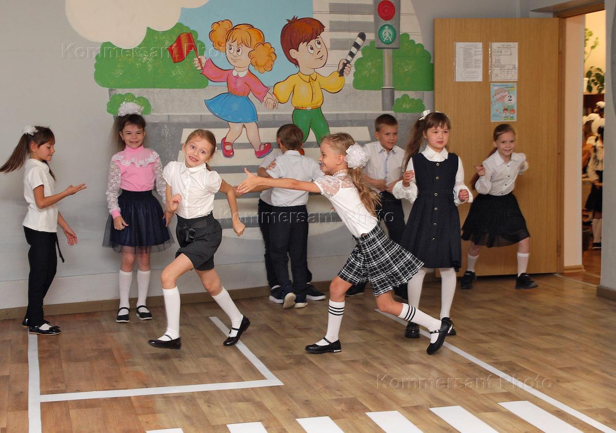 Праздник "День знаний", посвященный началу нового учебного года, в школе № 18. Жанровая фотография. Учащиеся начальных классов на перемене.