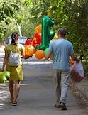 Праздник "День знаний", посвященный началу нового учебного года, в школе № 18. Жанровая фотография. Родители с воздушными шарами перед началом занятий.