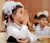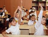 Праздник "День знаний", посвященный началу нового учебного года, в школе № 18. Жанровая фотография. Учащиеся начальных классов на уроке.