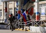 Праздник "День знаний", посвященный началу нового учебного года, в школе № 18. Жанровая фотография. Военнослужащие маршируют у входа в здание школы.