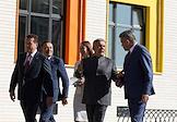 Церемония открытия гимназии №107 "Открытие" и торжественная линейка, посвященная Дню знаний, в Ново-Савиновском районе. Глава Республики Татарстан Рустам Минниханов (второй справа) и мэр Казани, председатель Казанской городской думы Ильсур Метшин (слева) во время церемонии.