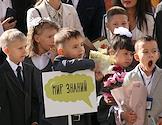 Церемония открытия гимназии №107 "Открытие" и торжественная линейка, посвященная Дню знаний, в Ново-Савиновском районе. Учащиеся во время торжественной линейки.