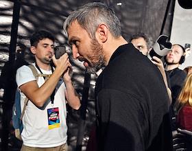 Городской фестиваль от FONBET и КХЛ к старту нового хоккейного сезона в торгово-выставочном комплексе "Дизайн завод". Жанровая фотография. Сотрудник охранного агентства на фестивале.