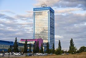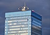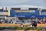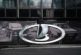 АО "АвтоВАЗ" (Волжский автозавод). Жанровая фотография. Логотип на здании штаб-квартиры АвтоВАЗ.