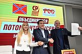 Первый заместитель руководителя фракции "Справедливая Россия - За правду" (СРЗП) в Государственной Думе России, председатель Совета регионального отделения партии СРЗП в Москве, кандидат в мэры Москвы Дмитрий Гусев (в центре), глава женского волонтерского движения "Победа" Елена Радченко (слева) и глава российского общественного движения (РОД) "Третья Сила" Игорь Скурлатов (справа) во время пресс-конференция в информационном агентстве "Аврора".