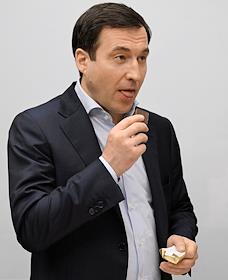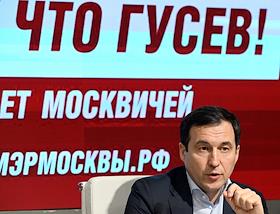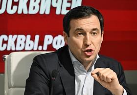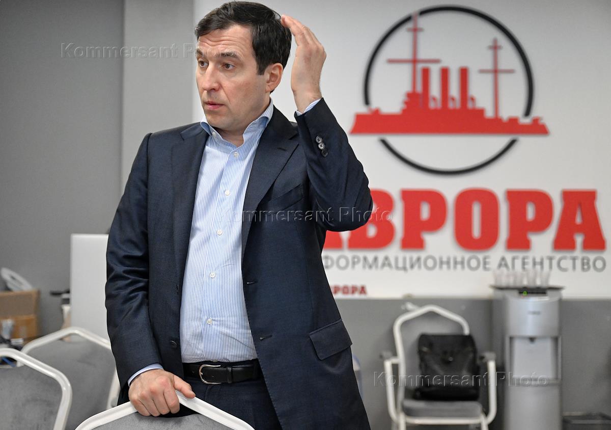 Первый заместитель руководителя фракции "Справедливая Россия - За правду" (СРЗП) в Государственной Думе России, председатель Совета регионального отделения партии СРЗП в Москве, кандидат в мэры Москвы Дмитрий Гусев во время пресс-конференция с представителями Лево-патриотического союза России в информационном агентстве "Аврора".