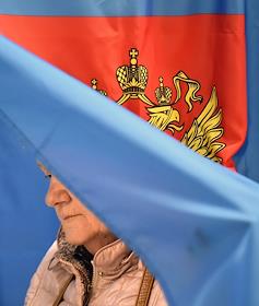 Единый день голосования (ЕДГ) -2023. Выборы губернатора Новосибирской области. Работа избирательных участков. Избирательница во время голосования.